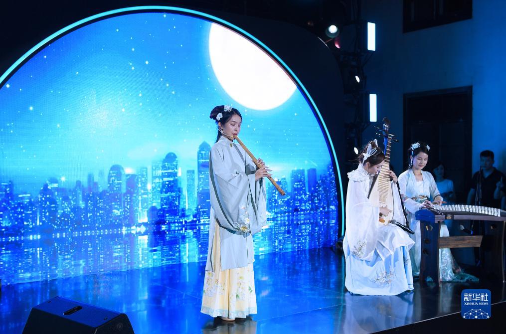 9月27日,演員在表演民樂合奏《城里的月光》。新華社記者 陳鐸 攝
