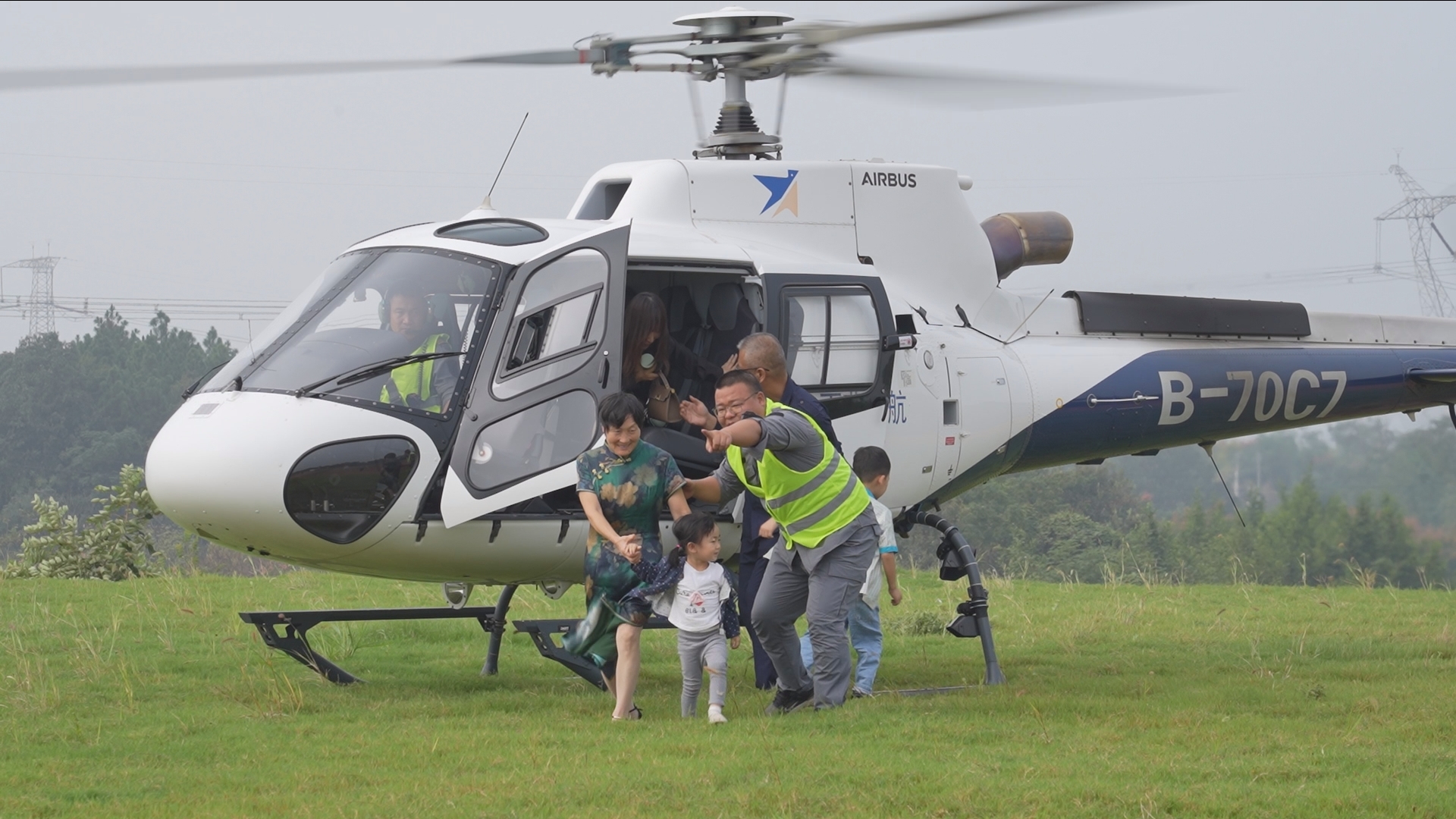 9月29日,咸寧嘉魚縣蜜泉湖景區的“松鼠”空客H125直升機從景區廣場平穩降落,游客從空中俯瞰咸寧美景,增加了別樣的旅游體驗。