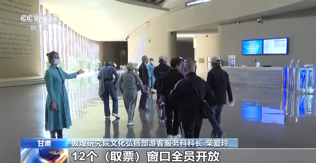 敦煌研究院文化弘揚部游客服務科科長 柴愛玲:“五一”假期,我們全員上崗,12個取票窗口全員開放。