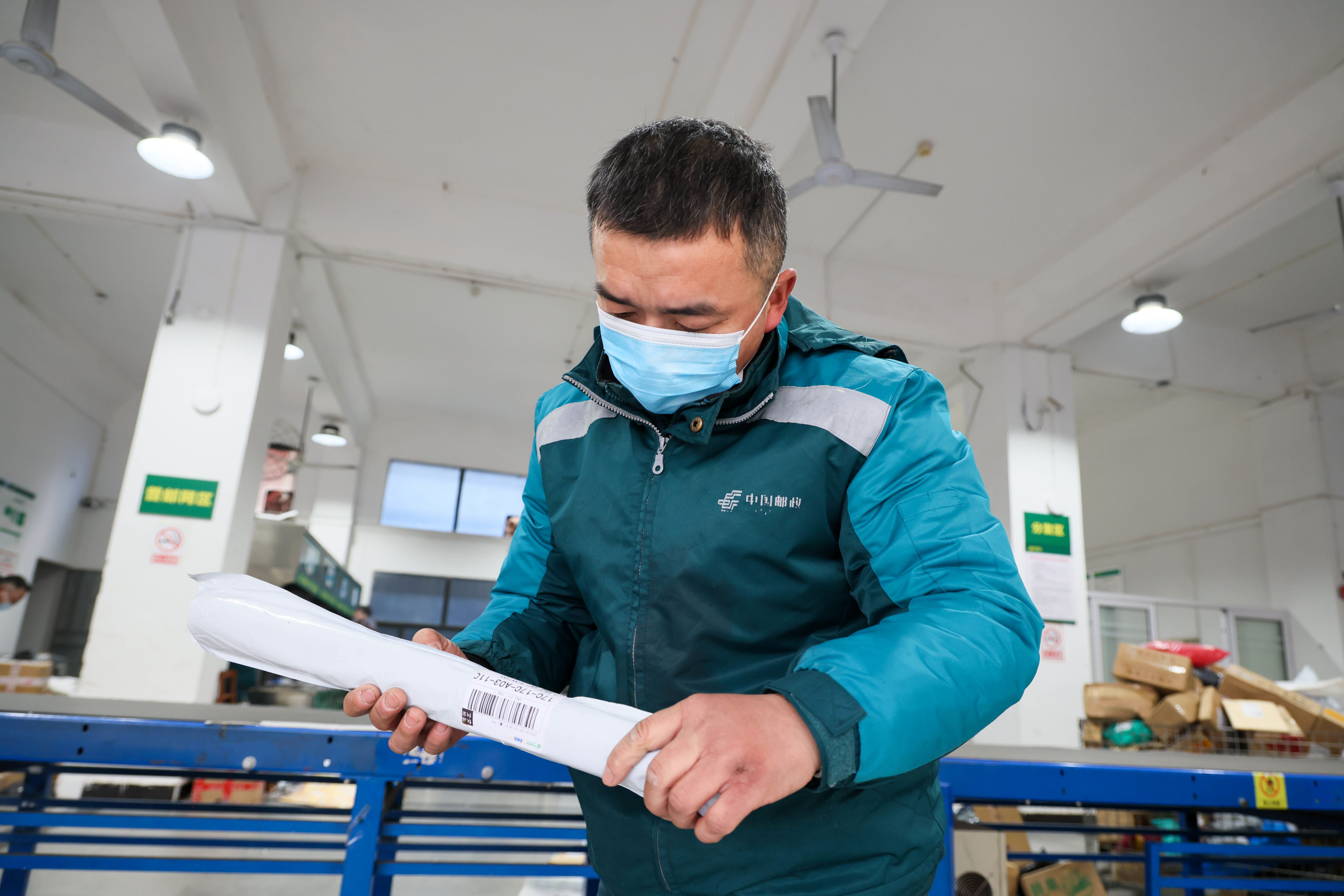 作為咸寧市區投遞量較多的站點,目前,郵政咸安攬投部每天到站的快遞包裹超5000件,全都要在一天內分批次投遞完。上午7時50分,當日第一趟快遞郵車到站,陳圣如同往常一樣一大早準時來到公司,卸貨、分揀、下段、排班……一系列熟練的動作后,陳圣快速地將自己段道區域內的包裹分裝上車。