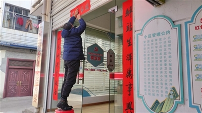 拿著志愿者寫好的春聯,王英勝小心翼翼地張貼在紅色驛站的玻璃門上。“我們紅色驛站迎來第一個春節,希望來年驛站會更好!”王英勝高興地說,讓“紅色驛站”釋放的紅色動能托起更多群眾的幸福生活。