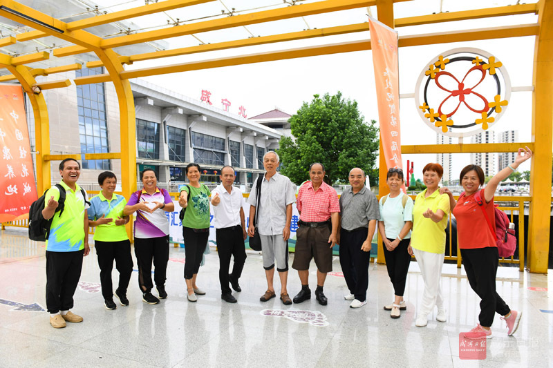 8月1日下午,來自廣西門球隊的11名隊員抵達高鐵咸寧北站 。當日,第四屆全國老年人體育健身大會門球交流活動的裁判員、技術代表、門球隊運動員陸續抵咸。??記者 陳紅菊 夏正鋒 攝