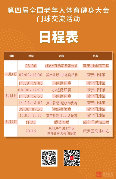 據介紹,第四屆全國老健會設有14個比賽項目,分別在全國14個城市舉行,其中門球交流活動在咸寧舉行;同時,第四屆全國老健會開幕式已于4月25日在四川瀘州舉行,閉幕式以及中老體協第七屆會員大會將在咸寧舉辦。