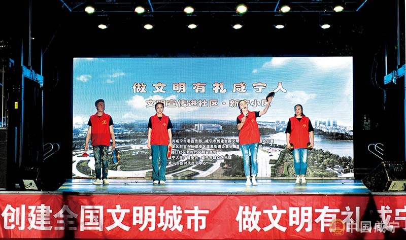 7月12日, “做文明有禮咸寧人”文明宣傳進社區活動第十六場走進永安街道西大街社區,以文藝演出的形式為群眾送去文明新風。