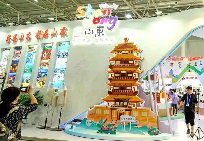 山東展區以好客山東、好品山東為主題,整體造型靈動、簡潔、現代、大氣,突出展示齊魯文化,彰顯山東深厚的歷史底蘊及博大精深的文化精髓。展臺分為“好客山東、好品山東旅游購物大禮包”展示區、“沿著黃河遇見海”品牌展示區、網紅地打卡區、非遺互動體驗區和舞臺表演區,全面展示了山東文旅融合發展新風貌。