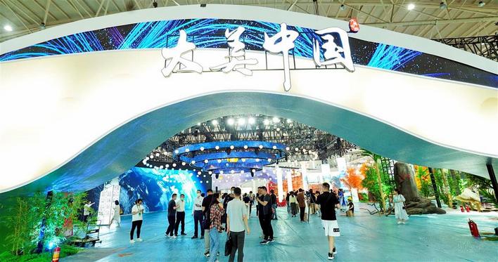 大美中國館展示生態文明之旅,以沉浸式體驗融合光影加上實景展示的多樣形式,讓游客飽覽我國首批5個國家公園的生態寶藏,全景展示我國幅員遼闊的自然風貌。展館內搭建云海茶園、天涯海角、椰林沙灘、虎山長城等實景或半景畫置景;多媒體影像展現福建土樓、亞龍灣、可可西里、長白山、青城山、都江堰、大九湖等著名地標景點;還有船歌互動《烏蘇里江》、天空之境打卡等沉浸場景體驗。