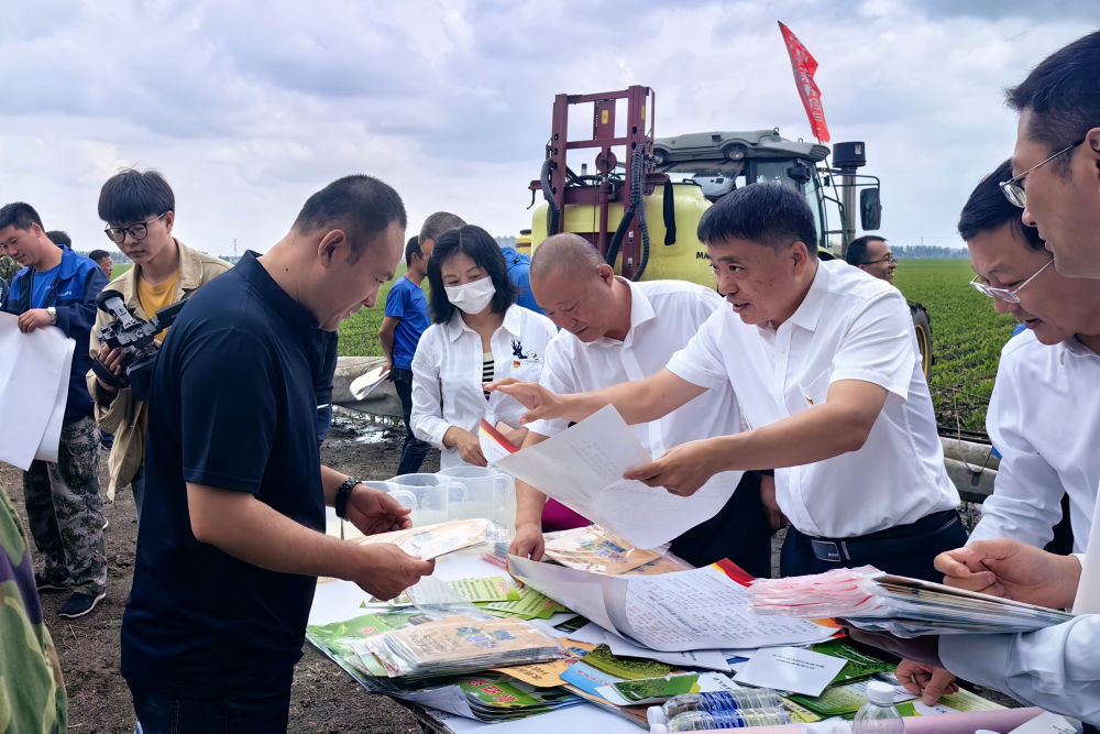 黑龍江省農(nóng)業(yè)農(nóng)村廳種植業(yè)管理處工作人員在哈爾濱市雙城區(qū)地頭,向農(nóng)民發(fā)放科學(xué)用農(nóng)藥資料(2023年6月11日攝)。學(xué)習(xí)貫徹習(xí)近平新時(shí)代中國特色社會(huì)主義思想主題教育工作會(huì)議召開以來,黑龍江省農(nóng)業(yè)農(nóng)村廳種植業(yè)管理處將理論學(xué)習(xí)與實(shí)際工作相結(jié)合,深入“田間地頭”調(diào)查研究、深入推進(jìn)“千萬噸糧食增產(chǎn)計(jì)劃”,助力黑龍江省當(dāng)好維護(hù)國家糧食安全“壓艙石”,將主題教育成果融入到維護(hù)國家糧食安全的具體實(shí)踐中。新華社發(fā)