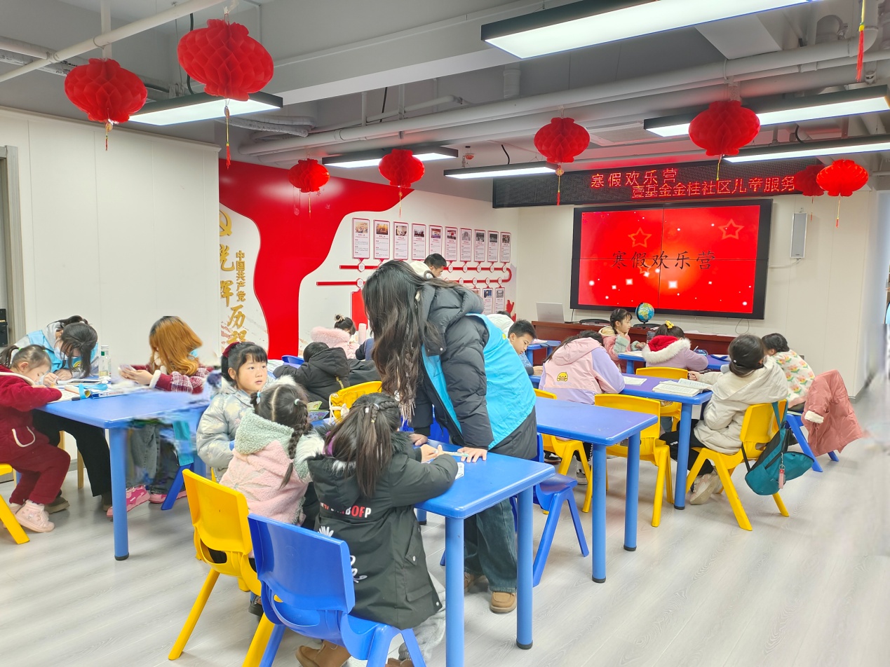 “我們的寒假歡樂營會邀請大學生們來做志愿者,為社區的孩子們輔導功課幫家長們解決孩子“看護難”的問題,更讓孩子們在家門口就樂享豐富假期?!薄〗鸸鹕鐓^負責人錢臣說,“這幾天臨近春節,我們還組織了不少節日主題的活動,因為活動趣味性足,孩子們都很愿意來參加,社區里每天都熱熱鬧鬧的?!?/span>