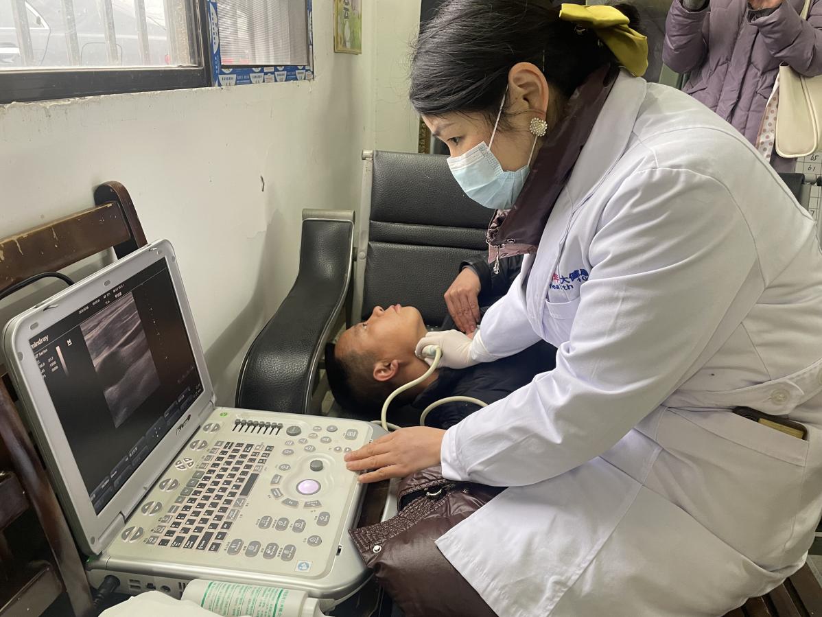 “阿姨,您有不舒服的地方嗎?您的血壓有點高?。 薄笆迨?,我們先給您做個頸動脈血管B超”,義診現場,來自美年大健康的醫護人員為村民免費進行血壓測量,頸部動脈b超等,針對篩查中發現的各種頸部血管問題,耐心細致講解疾病的相關知識并給予合理的診療建議。