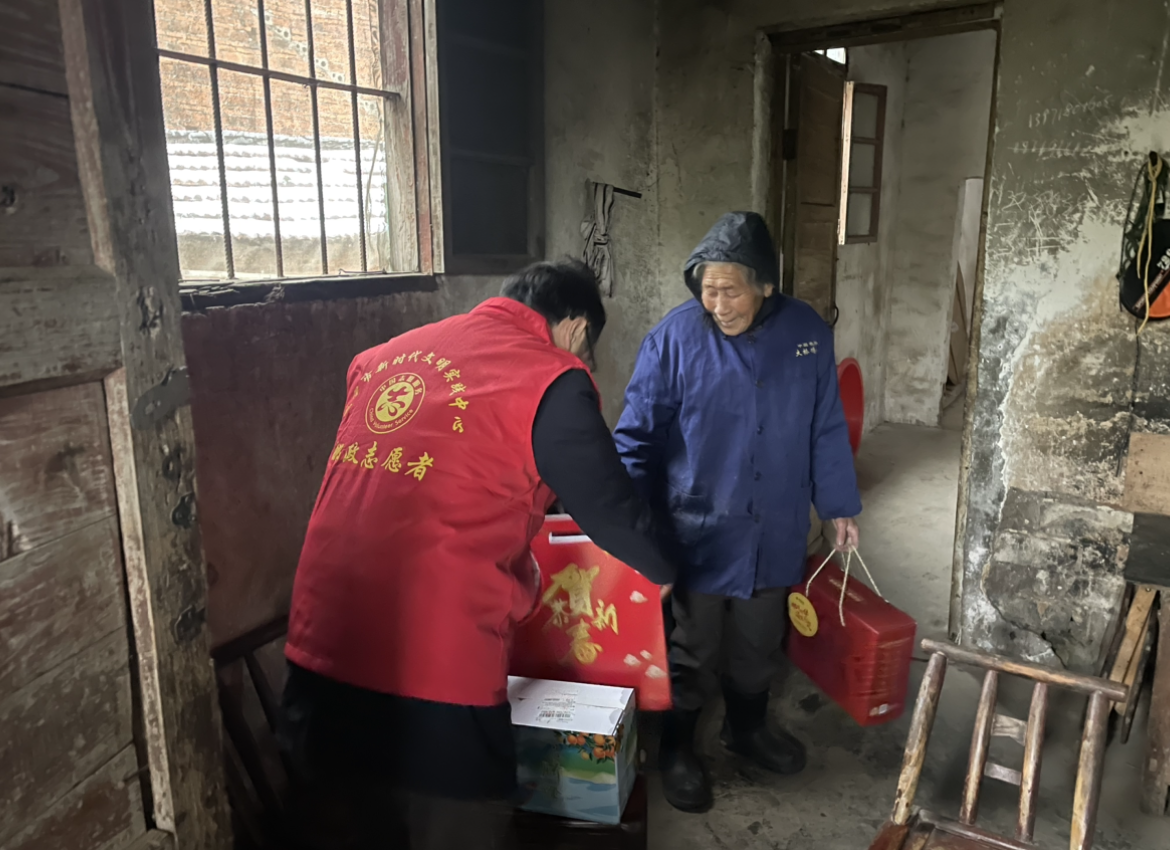在花坪村四組,志愿者們帶著“新春大禮包”前往村中空巢老人家中,并幫助老人打掃衛生,耐心細致地與他們交流談心,傳遞新春美好祝福。