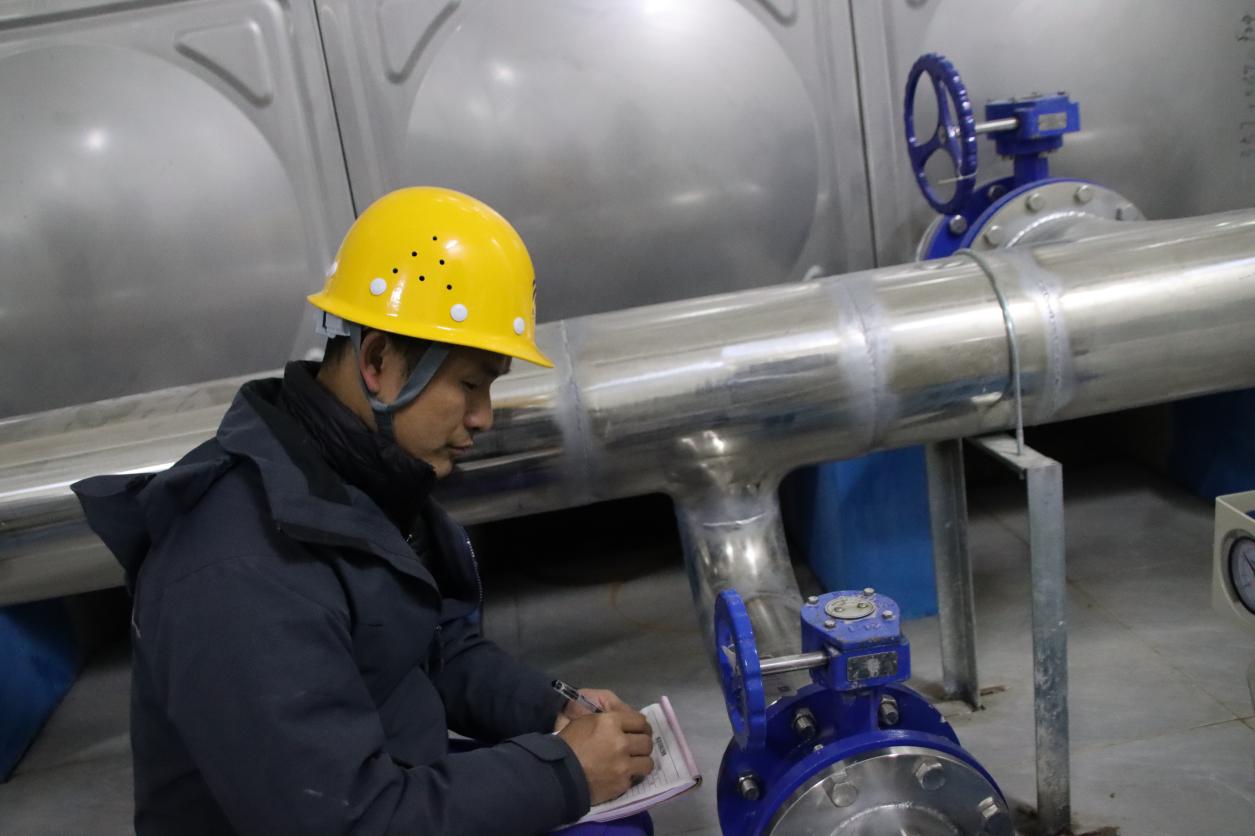 寒風凜冽,在咸寧市城區的一處供水管網前,工作人員小張正在緊張忙碌著,他手持工具認真地給裸露在外的水管包裹上厚厚的保溫材料。小張說:“我們不能讓水管受到絲毫的凍害,否則會影響到整個區域的供水。”