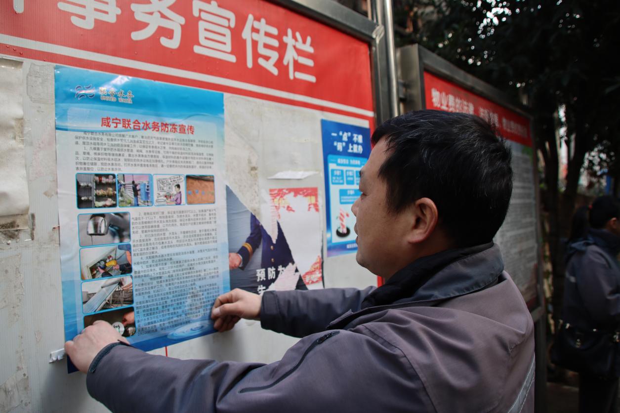 “可以用塑料泡沫等保溫材料對水管、水表、閥門進行包扎,如果氣溫降至零度以下時,夜間也可以稍稍擰開水龍頭至線流,保證管內自來水流動,以防止夜間凍結。”在咸寧市金桂社區的活動中心,咸寧聯合水務的工作人員正在一邊張貼宣傳海報一邊為居民們講解如何保護家中的供水設施,居民們聽得津津有味,紛紛表示要積極配合,共同做好冬季供水安全工作。據了解,為了提高市民的抗寒防凍意識,咸寧聯合水務公司通過媒體、公司網站、公眾號短視頻、營業廳電子屏、小區業主群等多方渠道向廣大用戶宣傳普及供水設施防寒小常識,與重點社區物業共商防凍措施,發動群眾力量共同參與冬季防凍工作中,最大限度保障供水設施安全過冬。
