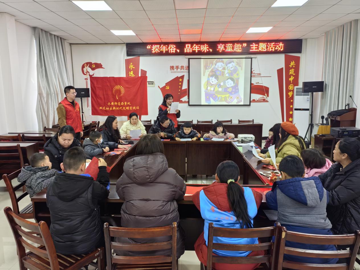 新年到、氣象新、福氣來!為了傳承中國優(yōu)秀傳統(tǒng)文化,營造喜慶祥和的節(jié)日氛圍,提升轄區(qū)居民幸福感,2月8日,永安街道辦事處雙龍社區(qū)新時代文明實踐站組織開展“探年俗、品年味、享童趣”主題活動。