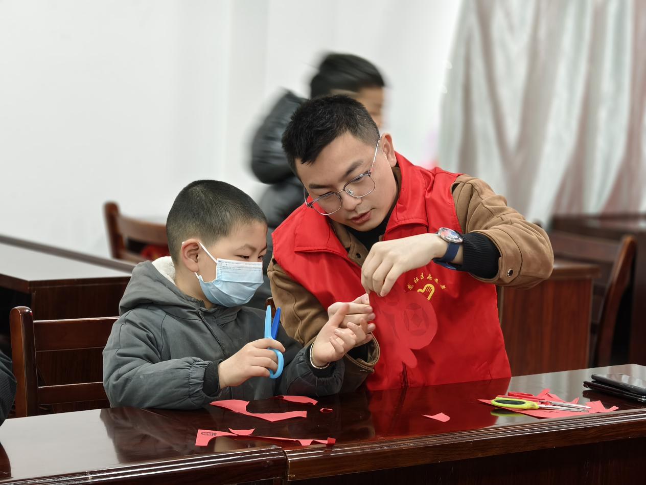 活動現(xiàn)場,志愿者首先向大家講解春節(jié)的來歷和風(fēng)俗,同時展示具有新年氛圍的剪紙作品,通過生動的年味小故事幫助孩子們加深對春節(jié)的認(rèn)識和了解。隨后,志愿者介紹剪紙的方法和技巧,并給大家分發(fā)剪紙工具,手把手實踐教學(xué)。