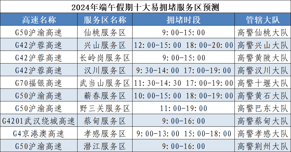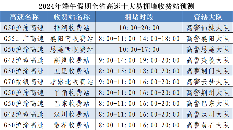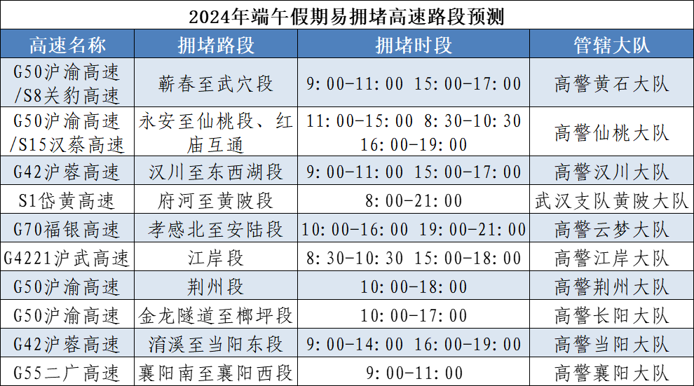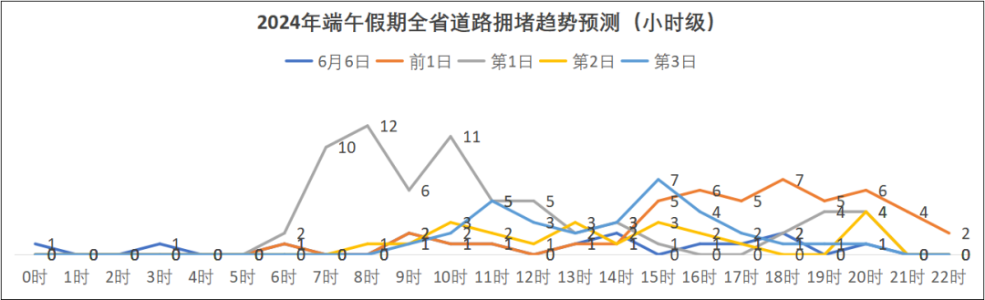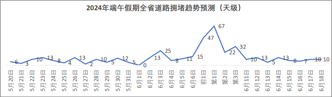預(yù)計今年端午假期,擁堵時段主要集中在6月7日16~21時、6月8日9~12時、6月10日14~20時,其中第一日擁堵程度最高。