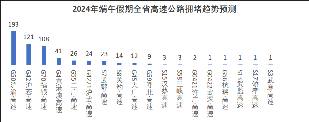 滬渝、滬蓉、福銀、京港澳、二廣、滬武、武鄂、關(guān)豹等高速擁堵風(fēng)險較高。