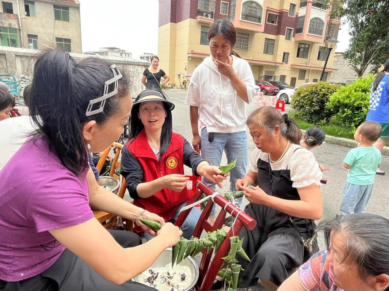 活動現場,“桂鄉管家”陳婷為大家講述端午節的由來和習俗,帶領居民們一起包粽子、做艾草龍舟船、猜字謎,大家圍坐在一起,有說有笑,就像是一個歡樂的大家庭。同時,三元城小區桂鄉管家利用本次活動,向在場的家長、小朋友們耐心講解了消防安全、掃黃打非、防溺水等知識。