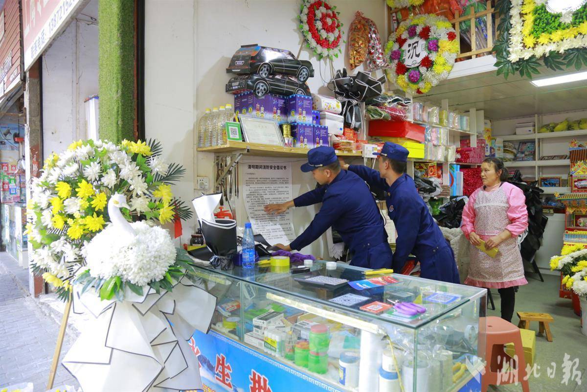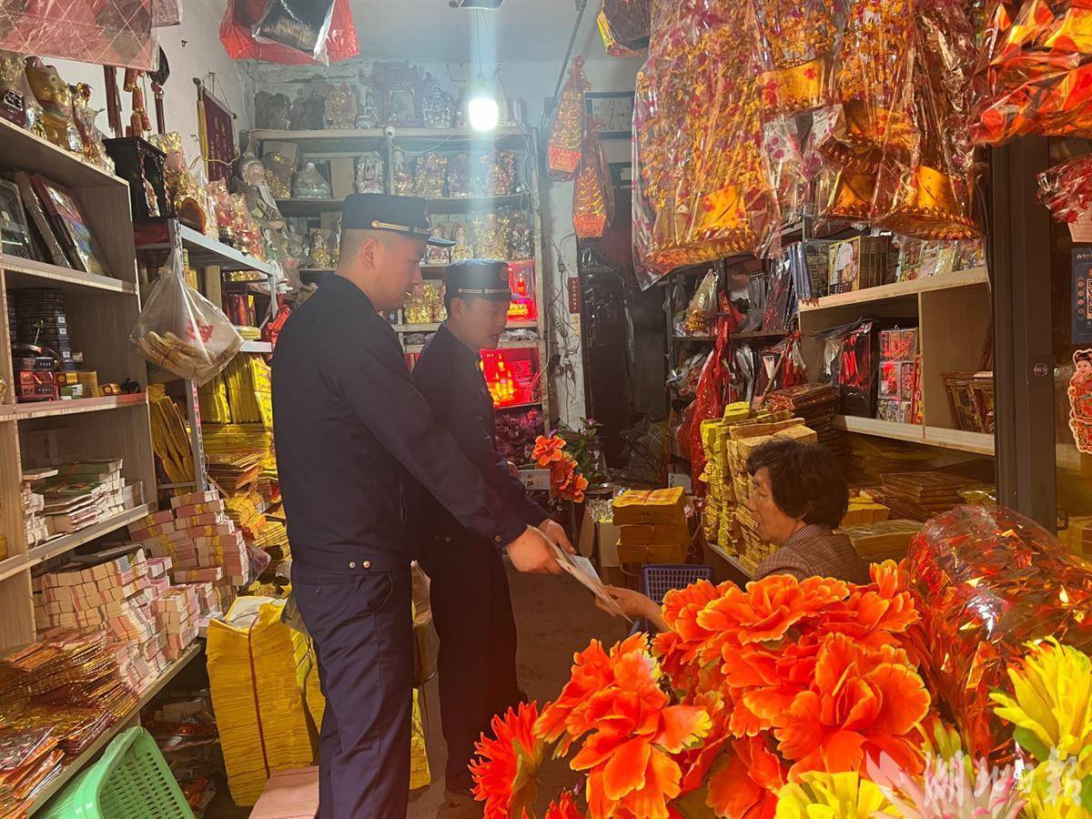 “老板,祭掃物品存放處必須遠離火源、電源、氣源,定期開展檢查,及時清除存在的火災隱患。”這些火紙和塑料花都是可燃物,因此必須遠離火種。在咸寧市咸安區懷德路、通山縣青山路、崇陽縣祭祀用品沿街門店,防火監督員深入門店進行消防安全檢查和提示提醒。每到一處,他們都重點檢查了場所消防設施設備配備、消防基本常識掌握、電氣線路敷設等情況,提醒經營者要提高安全意識,按規定配齊消防設施器材。