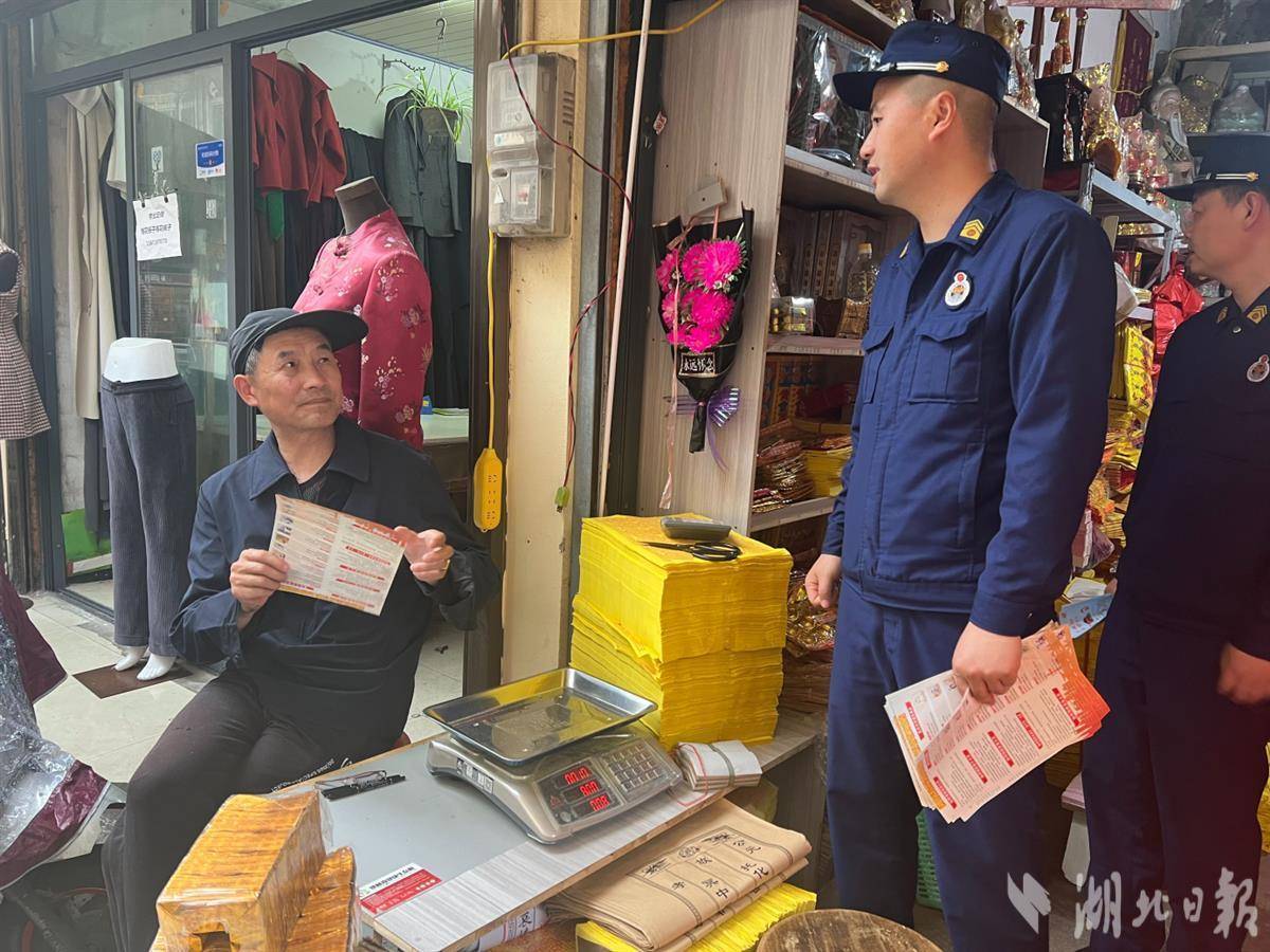 為叮囑群眾文明祭掃,不違規用火,孝感市消防救援所等基層力量,深入轄區湯家街小商品市場開展清明節前消防安全宣傳活動,向沿街商戶、流動攤販發放《清明節文明祭祀倡議書》6000余份。
