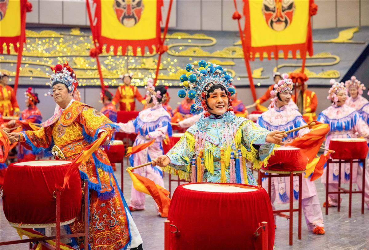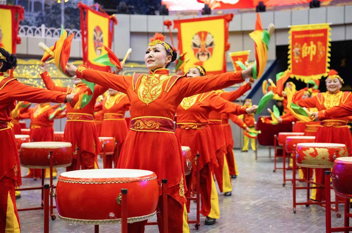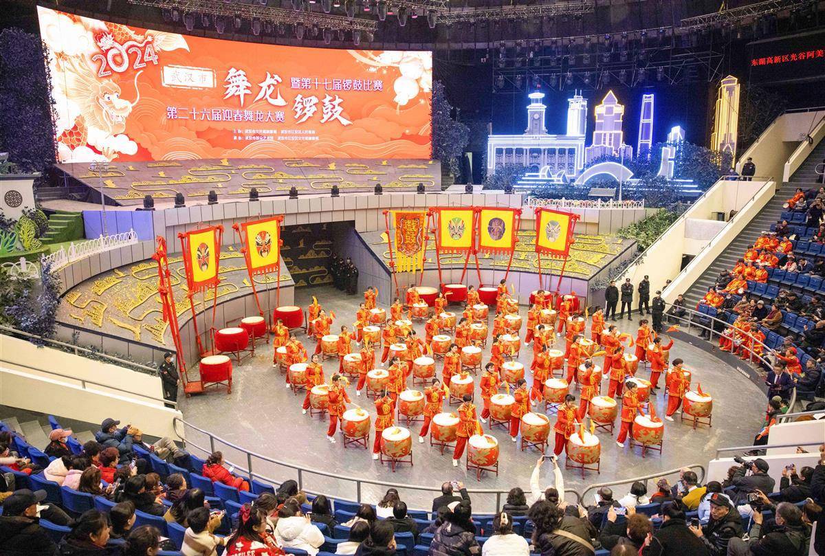 2月21日,武漢市第26屆迎春舞龍大賽暨第17屆鑼鼓比賽在武漢雜技廳舉行,來自武漢三鎮的23支龍隊和21支鼓隊同場競技,展示本土民俗藝術,弘揚優秀傳統文化,共迎元宵佳節。圖為參賽隊伍進行鑼鼓比賽。