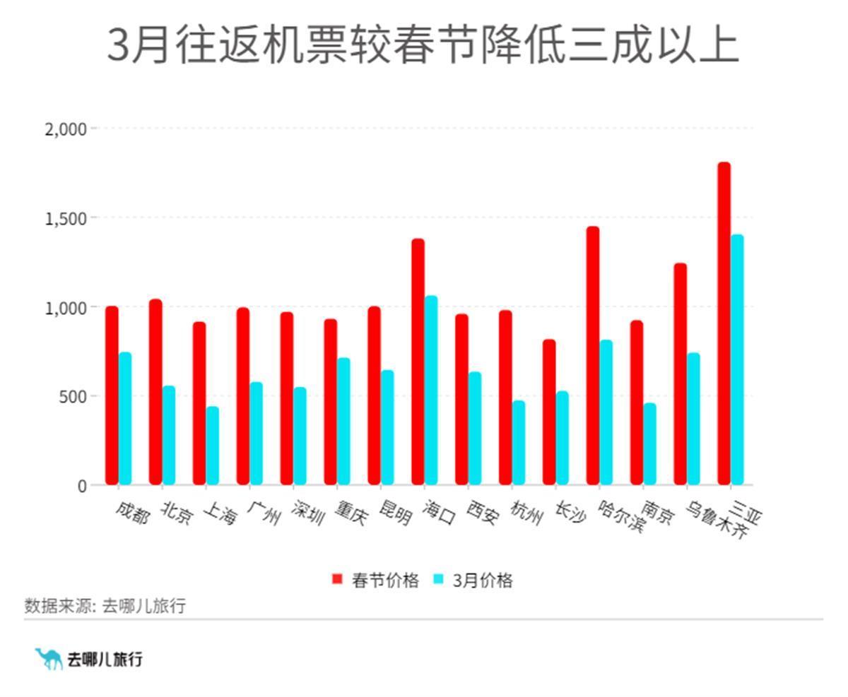 去哪兒數據顯示,本周出行旅客主要有三種,一是延遲返工的旅客,熱門出發地為海口、三亞、昆明、哈爾濱等;二是公商務旅客,熱門出發地為上海、廣州、北京、成都、深圳等;三是返校學生,出發地覆蓋較廣。由于旅游客源占比明顯降低,部分旅游線路出現低價票。