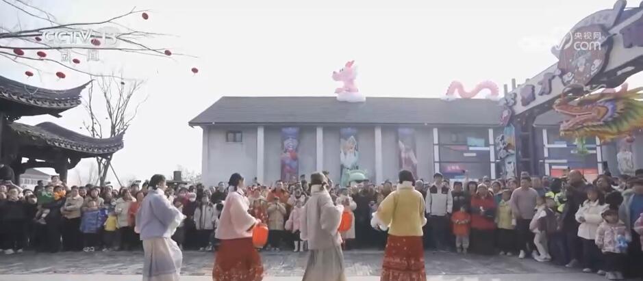 在江蘇鹽城市建湖縣的九龍口淮劇小鎮(zhèn)景區(qū),元宵節(jié)前,這里張燈結(jié)彩、游人如織。街巷中有各種民俗表演,茶館里游客們一同參與做燈籠、做湯圓,盡享濃濃節(jié)日氛圍。