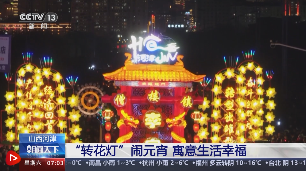 山西河津:“轉(zhuǎn)花燈”鬧元宵 寓意生活幸福