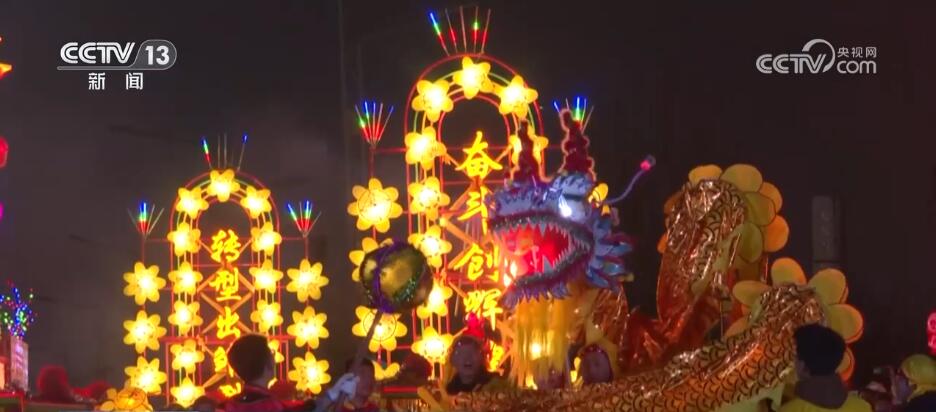 轉(zhuǎn)花燈表演多在佳節(jié)良宵時進行,寓意前程光明、生活幸福,此次表演將持續(xù)到正月十六。