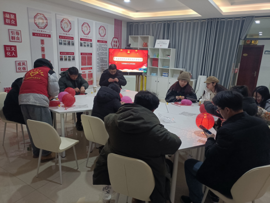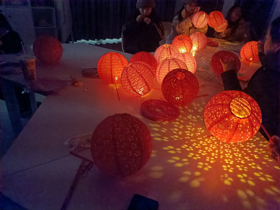 “縟彩遙分地,繁光遠綴天。燈籠,又統稱為燈彩,是一種古老的中國傳統工藝品,又大又圓的紅燈籠代表著喜慶與團圓。從古代起,人們就有掛燈籠的習俗。”制作燈籠環節,志愿者先是介紹了燈籠文化的來源及其包含的寓意。隨后在志愿者的指導下,大家紛紛動手,將手中的彩紙、竹篾等材料變成一個個色彩斑斕的燈籠。大家興奮地參與其中,親手制作屬于自己的燈籠,并計劃將它們帶回家,與家人共度元宵佳節。