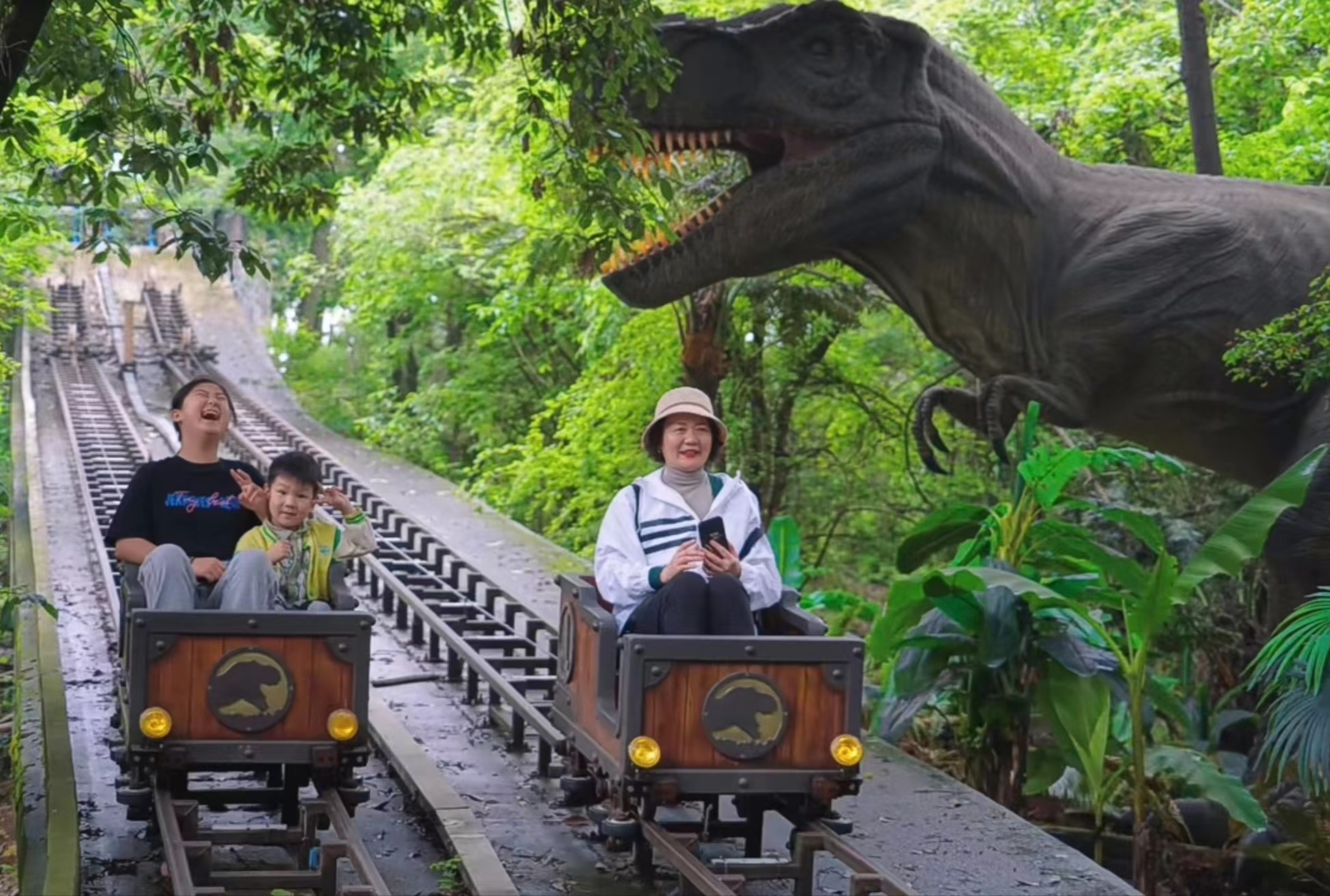 去年以來,陸水湖風景區策劃了探秘島升級游玩方案,增設了新的游玩方式。創新開發的人機交互探秘的行浸式恐龍研學主題島嶼,以家庭為單位參與積分互動,可以領取手環及護照,完成任務還有獎勵,吸引了眾多游客。
