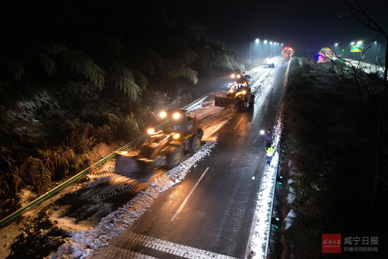 2月25日8時,經過近千名工作人員、近300臺鏟冰融冰設備通宵達旦作業,武深高速咸寧境內全線雙向車道成功打通。至此,咸寧境內高速公路實現全線貫通,標志著咸寧高速公路鏟雪保通戰役取得決定性勝利。