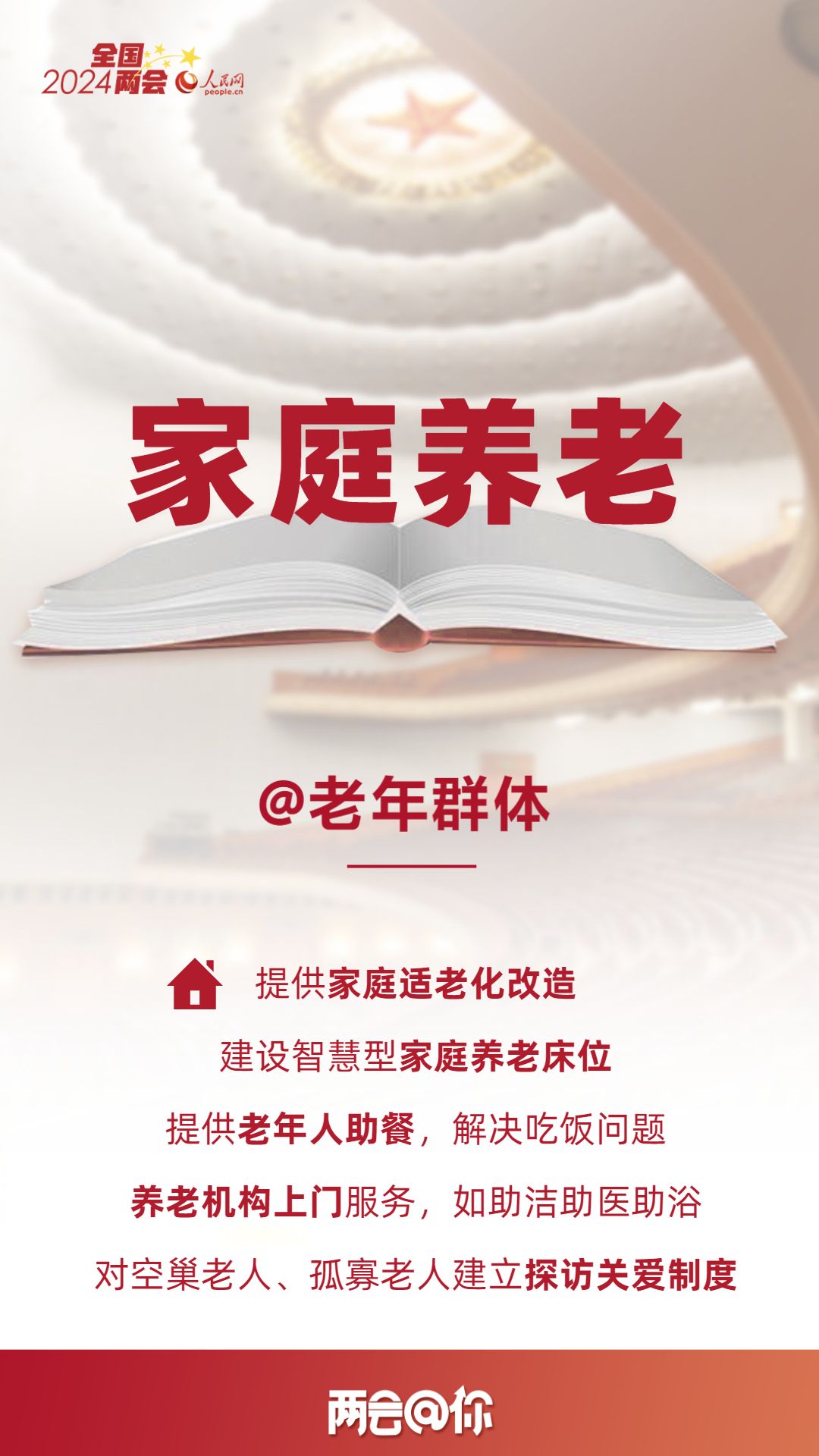 首頁 >> 專題報道 >> 2024專題 >> 聚焦2024全國兩會 >> 要聞聚焦 >> 正文編者按:家家有老人,人人都會老。如何讓老年人健康幸福地安度晚年,是一道現實課題。推動“養老”向“享老”轉變,今年全國兩會釋放了哪些利好?本期“兩會@你”,為您梳理養老政策“紅包”。