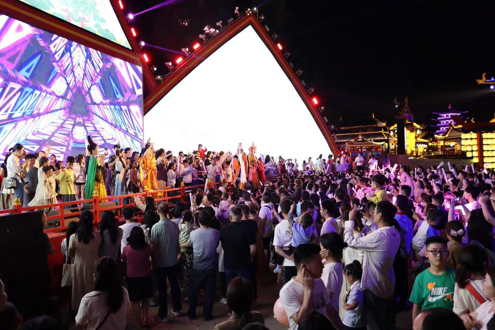 嘉魚戀江湖船歌島景區以西游為主題,推出鐵扇公主、大鬧龍宮等10余個特色展演,配合非遺打鐵花、火壺表演和大型音樂焰火,讓游客充分感受傳統文化魅力。景區連續兩天3萬人入園,1—4日接待游客超11萬人次。