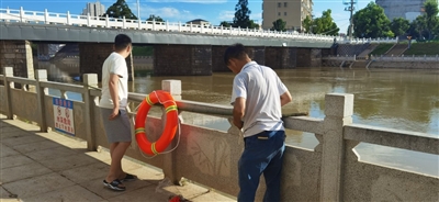 當天上午,記者先后來到永安街道西河橋、紅橋、雙龍山水庫等地,看到施工人員正在掛防溺水警示標語,同時配套投放救生圈、救生繩及救生桿等救援設備。