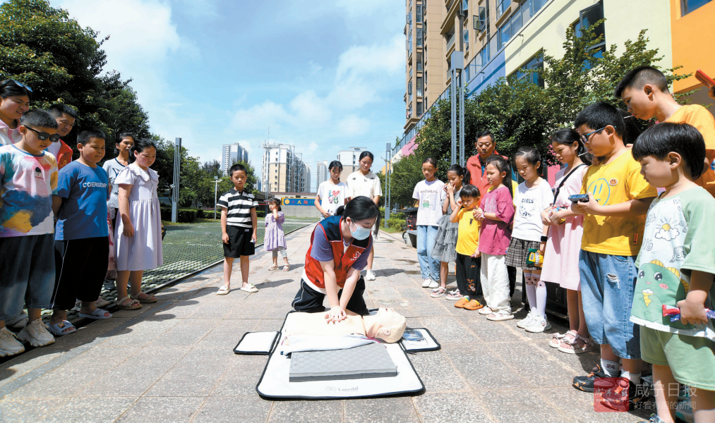 6月30日,咸安區浮山街道金桂社區始峰悅府小區黨支部聯合湖北科技學院“陽光天使”工作坊在小區內開展“守護生命,‘救’在身邊”防溺水知識宣講活動。志愿者帶領孩子們學習防溺水、自救、施救等相關知識,演示心肺復蘇術的標準操作流程。讓孩子們在互動中學習到防溺水知識,增強了自我保護能力。