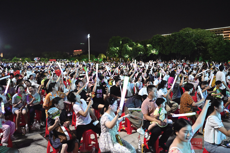 隨著音樂的流轉(zhuǎn),《海闊天空》《當(dāng)你》《向陽花》《稻香》《無名的人》等不同風(fēng)格的曲目輪番上演。大家或舞動(dòng)手中的熒光棒,或跟隨著音樂的節(jié)奏高聲哼唱,音樂如同一條無形的紐帶,將來自五湖四海的大學(xué)生與咸寧市民緊密相連。