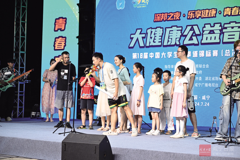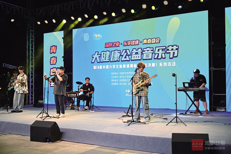 夏夜的蟬鳴與璀璨的星光相互交織,7月24日晚8時(shí),咸寧市人民廣場迎來了第18屆中國大學(xué)生跆拳道錦標(biāo)賽(總決賽)系列活動(dòng)——“深邦之夜·樂享健康·青春盛會(huì)”大健康公益音樂節(jié)。這場集樂隊(duì)演奏、街舞展示、嘻哈搖滾等多種音樂元素于一體的青春盛宴,吸引了眾多來自五湖四海的跆拳道健兒及市民的熱情參與,共同點(diǎn)燃了夏夜的激情。