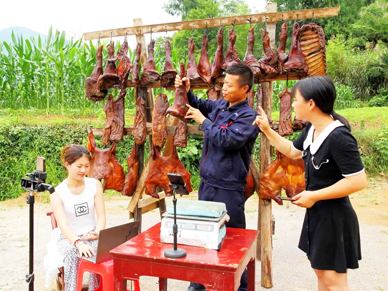 “家人們看過來!這是剛出熏房的排骨,肥瘦相間,上鍋蒸20分鐘就能吃!”在公司的直播間,阮長輝對著手機鏡頭熟練地拆解臘肉,身后的背景墻循環播放著熏房實拍視頻。