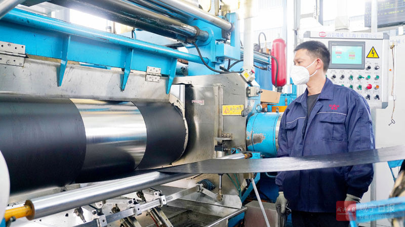 6月18日,在嘉魚經濟開發區武漢新港產業園的武漢冠聯新材料科技公司內,一塊塊天然橡膠經過配藥、攪拌、擠壓等多道工序后逐步成型。