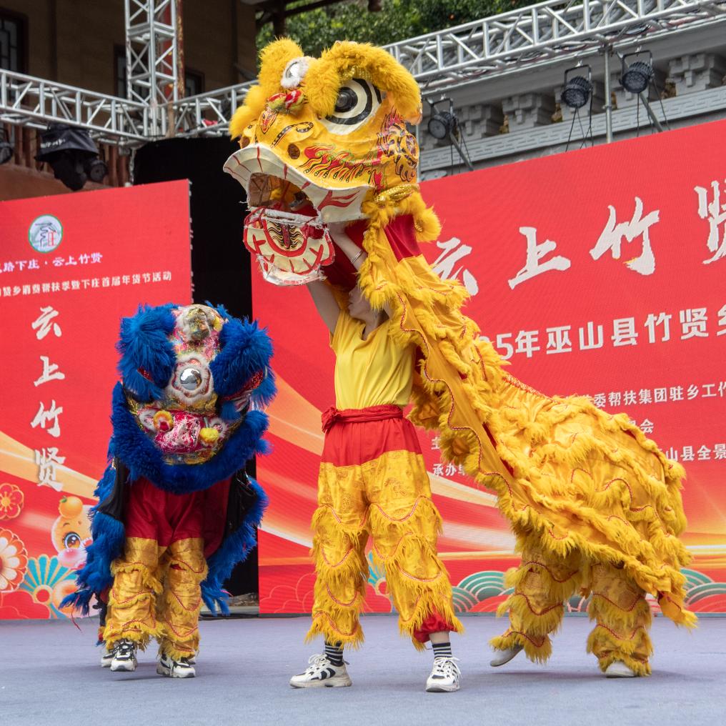 重慶市巫山縣竹賢鄉(xiāng)下莊村,村民演舞獅迎新春。新華社記者 唐奕 攝