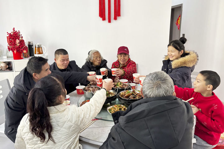 ??2025年1月28日,湖南省華容縣團(tuán)洲鄉(xiāng)團(tuán)洲新村居民在新家吃團(tuán)圓飯過大年。新華社發(fā)(吳巍偉 攝)