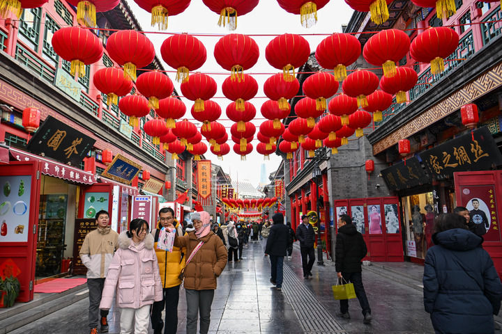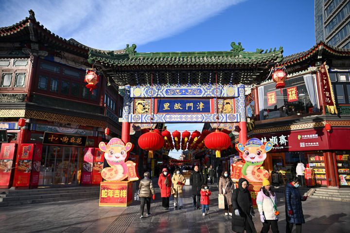 ??2025年1月28日,游客在天津古文化街游覽。新華社記者 孫凡越 攝