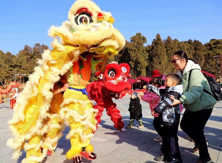 ??2025年1月28日,在河南南陽(yáng)臥龍崗文化園內(nèi),市民欣賞舞獅表演。新華社發(fā)(高嵩攝)
