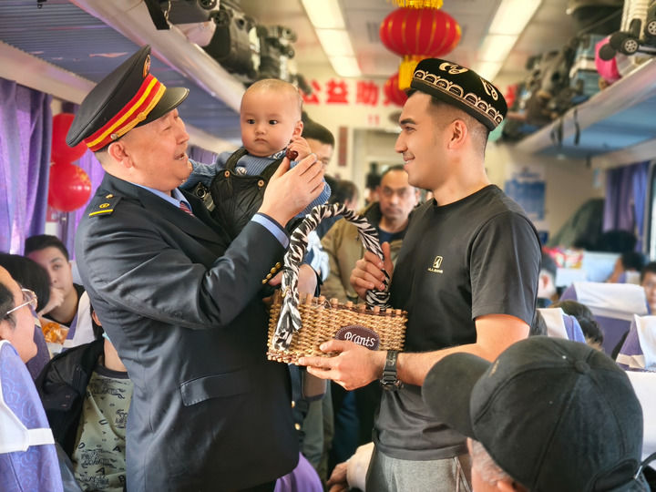 “列車巴扎開市啦!”1月25日早9點,祖國大西北,7558次“和田玉龍號”列車開出新疆和田站。沒多久,12號車廂里就傳來列車長坡拉提汗的吆喝聲。車廂里立馬熱鬧起來,售賣農副產品的吆喝聲、旅客的笑聲和交談聲奏響了歡樂的旋律……