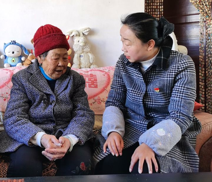 ?楊汝鈺(右)在社區一位老人家中進行入戶慰問。新華社發(李建華攝)