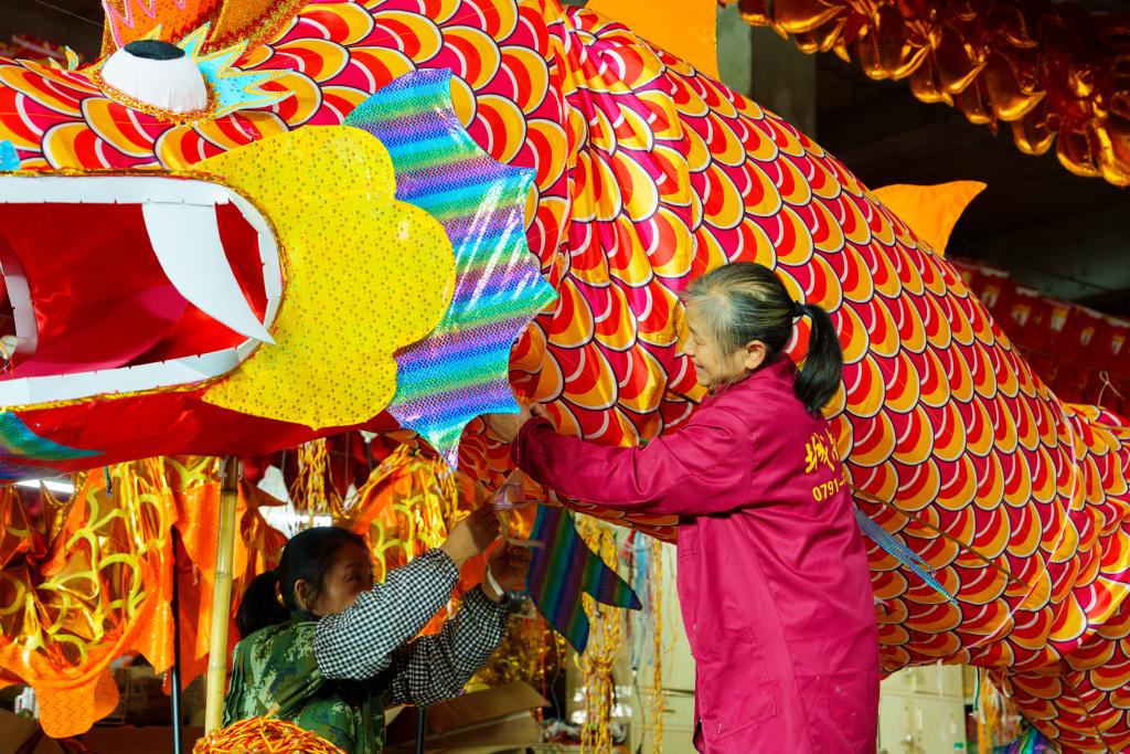 1月24日,城南龍燈廠2024年以來生產的第一萬條傳統龍燈,從陳列館中被“請”出。