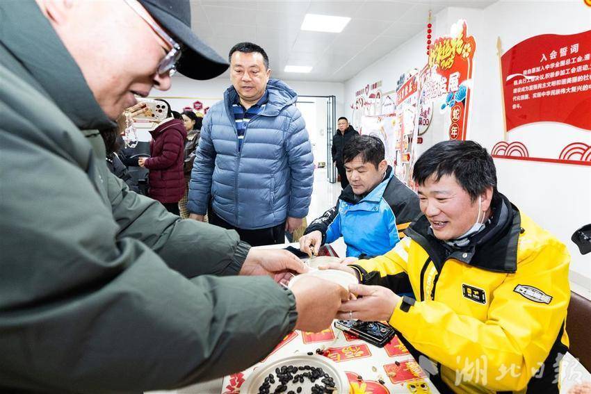 2月11日,在武漢市武昌區機安社區工會驛站,30余名外賣騎手們齊聚一堂,品嘗由工作人員專門準備的熱氣騰騰的湯圓,度過別樣的元宵佳節。武昌區工會驛站現場發布十大暖“新”服務項目清單,“7+N標準服務、愛心托管、心理咨詢、科普課堂、醫療救助、輔具設備免費租賃”等群團服務攜手進驛站,精準回應和關心勞動者們的實際需求。目前,全省已建成工會驛站5035個,優選121家驛站打造“群團聯動”示范站點,送溫暖、幫就業、送文化、技能培訓、法律援助等多元化、精準化服務一站即達,在今年“兩節”送溫暖活動中,省市縣三級群團組織各類關愛服務活動2600多場次、覆蓋職工群眾50余萬人次。未來還將充實理發、一鍵入會、法律援助指引等“15項+”基礎服務,聯合群團組織新建200家“群團協同”驛站綜合體,讓城市街角的工會驛站,成為點亮戶外勞動者的溫暖之家。(湖北日報全媒記者 何宇欣 通訊員 黎甜夏巨波 孫凡 攝)