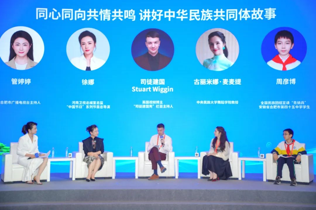 本次分論壇以“構筑中華民族共有精神家園網絡空間”為主題,中國人民大學教授沈江平,中央民族大學教授肖小勇,安徽師范大學教授劉道勝,中國日報社副總編輯孫尚武,中國民族報社總編輯閆永分別發表主旨演講。河南衛視總編室總監徐娜,視頻博主司徒建國(Stuart Wiggin,英國籍),中央民族大學教授古麗米娜·麥麥提,全國民族團結宣講“青騎兵”、安徽省合肥市第四十五中學學生周彥博等嘉賓,圍繞“同心同向共情共鳴 講好中華民族共同體故事”進行圓桌對話。