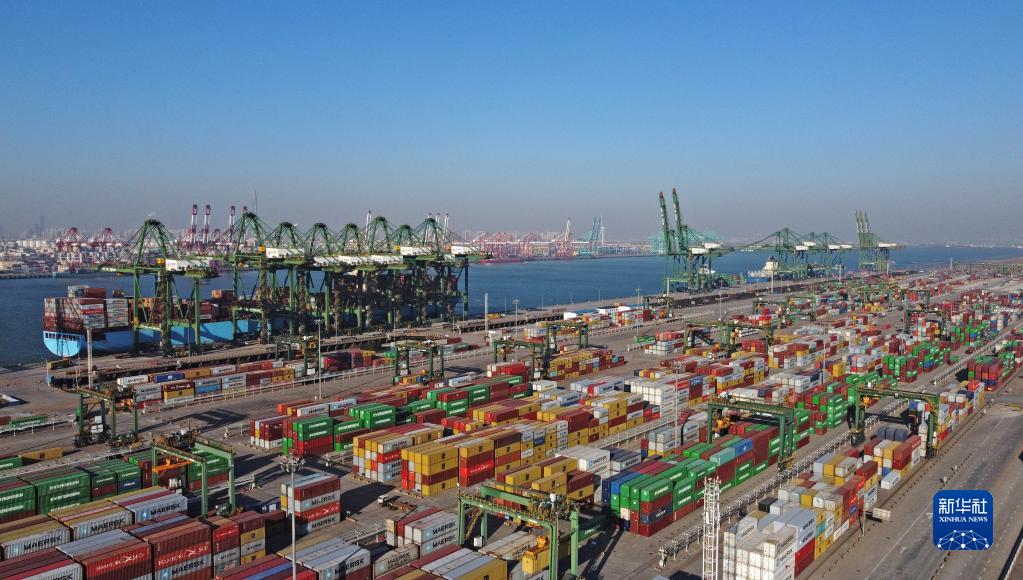 這是天津港太平洋國(guó)際集裝箱碼頭(2021年12月18日攝,無人機(jī)照片)。
