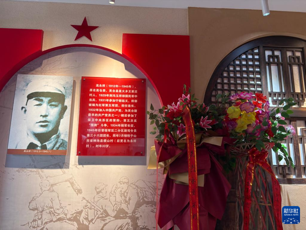 在中共靈臺工委紀念館的高永祥專題展廳內,群眾自發獻上的花籃擺放在高永祥照片旁。紀念館工作人員介紹,前來吊唁的群眾很多,在清明節更是鮮花滿廳。